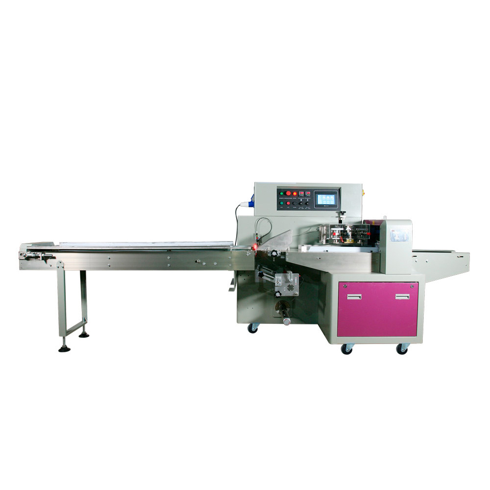 Горизонтальный упаковочный автомат MAGIKON-450AGXTS - предназначен для упаковки различных изделий в упаковку «Flow-pack». Машина имеет нижнюю размотку пленки - для легких, бесформенных, мягких продуктов. Подходит для длинномерных продуктов, таких как хозяйственные полотенца, бумажные платки, а также для упаковки лапши, колбасных изделий, рыбы, мороженого, мармелада, печенья, свежих фруктов и т. д. Мелкоштучные продукты упаковываются по одному, а для групповой упаковки сначала должны быть упакованы в коррекс, коробку или скреплены между собой. Продукты выкладываются на ленту транспортера в произвольном порядке.