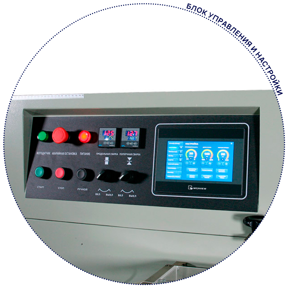 - Раздельное управление температурой при помощи термоконтроллеров подходит для использования различных видов упаковочной пленки.